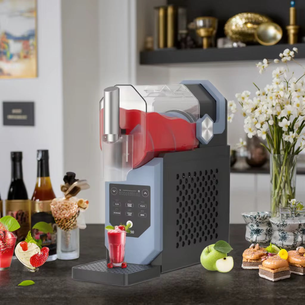 مكينة السلاش الاحترافية بسعة 2 لتر مصممة لتعطيك تجربة كافيه في البيت أو في المناسبات الكبيرة.